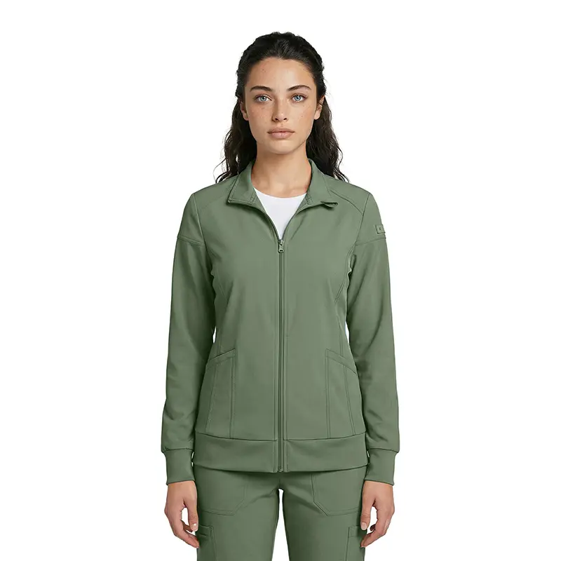 • WOMEN’S ZIP-FRONT WARM-UP JACKET – 4-WAY STRETCH, MOISTURE-WICKING, CONTEMPORARY FIT–MEDICAL SCRUBS JACKET (STYLE 4080)