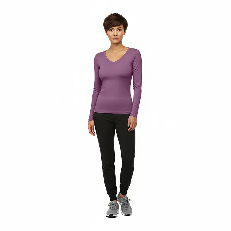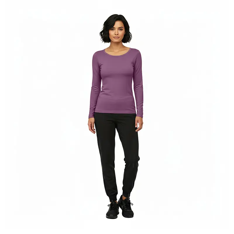 • CAMISETA MÉDICA ELÁSTICA DE MANGA LARGA CON CUELLO REDONDO – TOP SANITARIO (ESTILO N.º 7160)