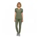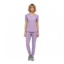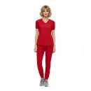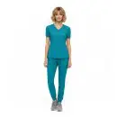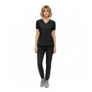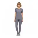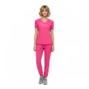 - V-neck short sleeve scrub top with: