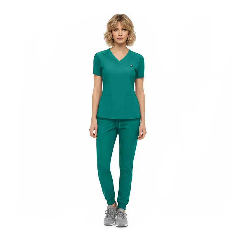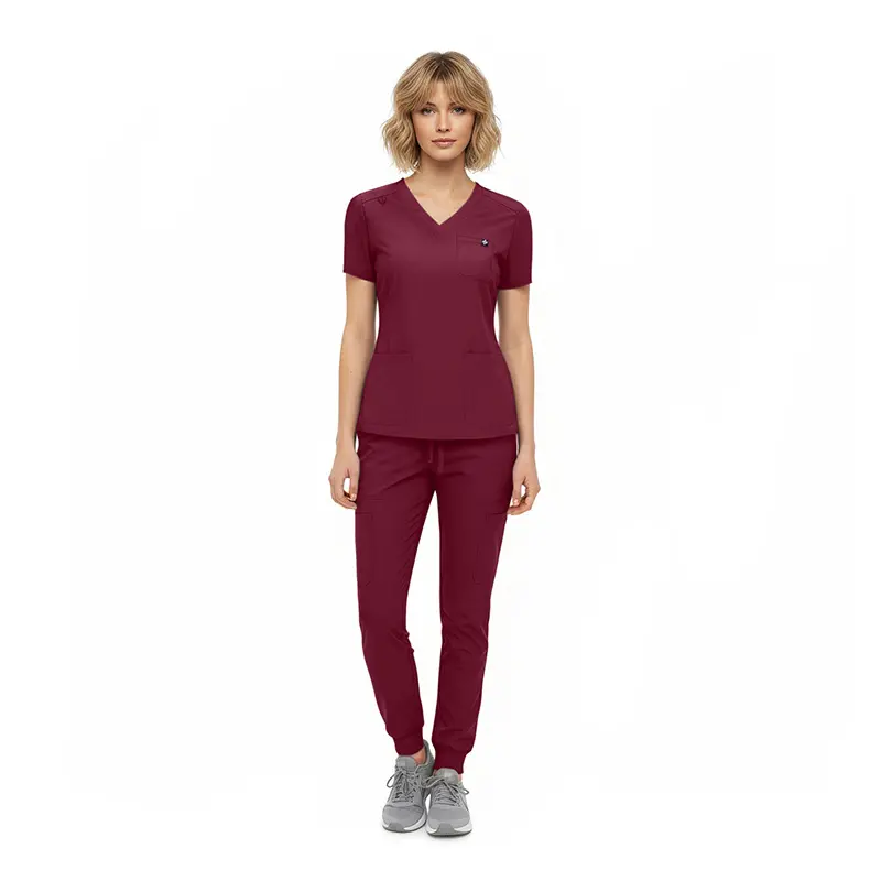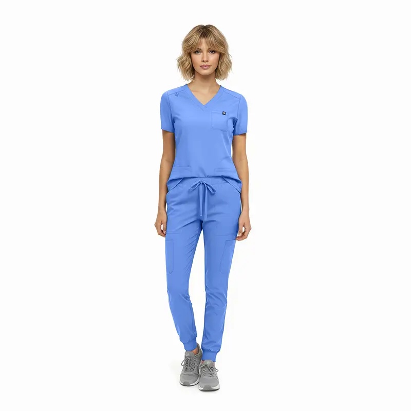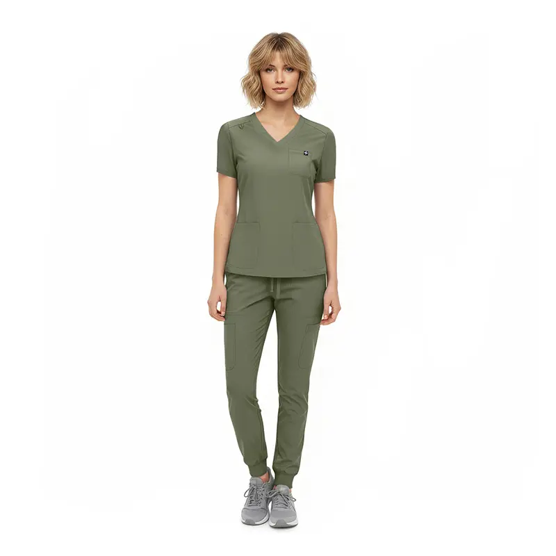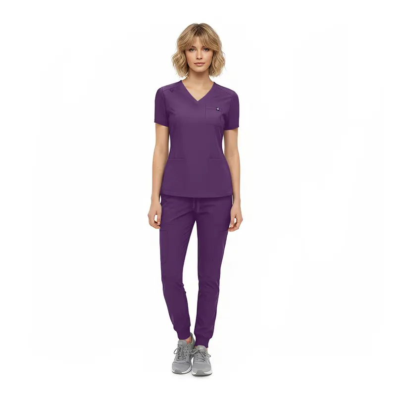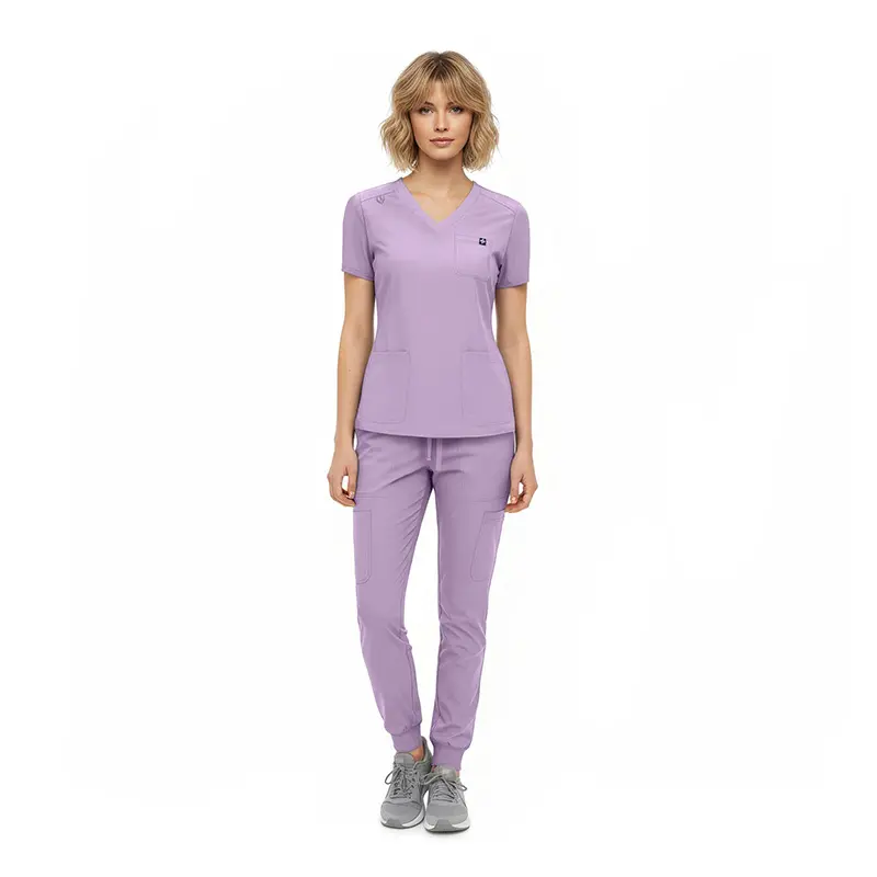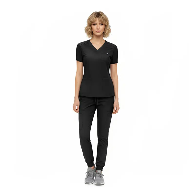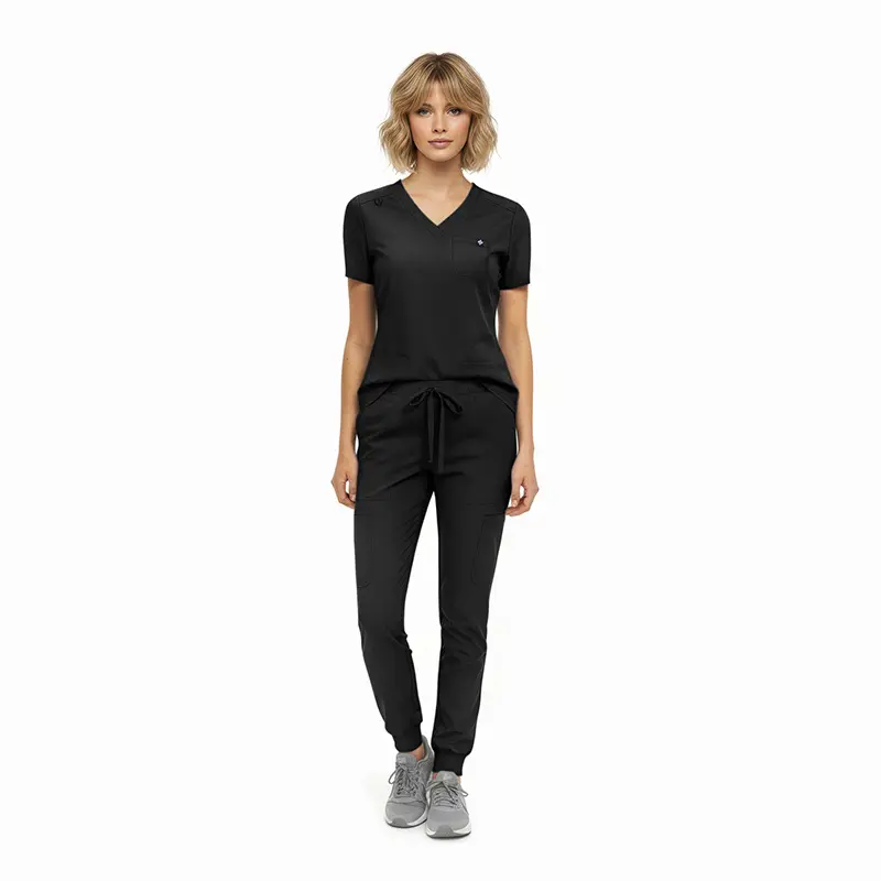 - Jogger-style scrub pants featuring: