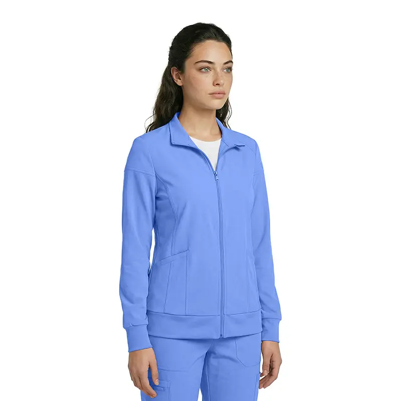 - Practical Storage Options – Features two roomy front welt pockets and a hidden interior pocket for essentials like your phone, badge, or pens. Includes an instrument loop for added convenience.